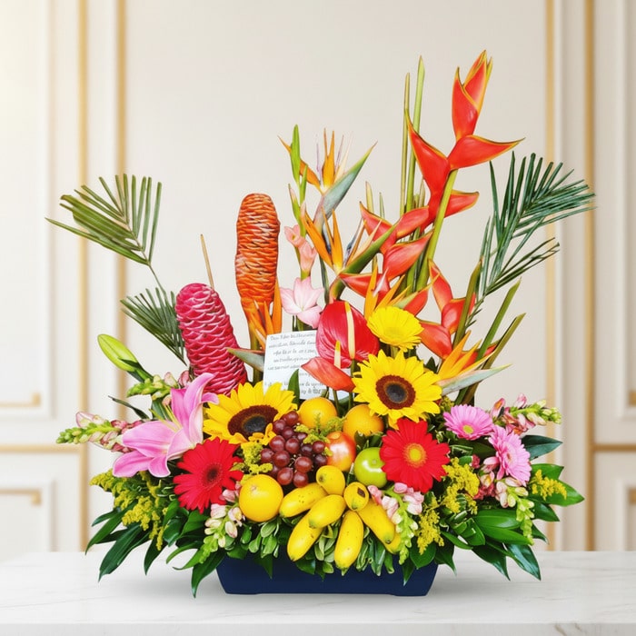 Arreglo Floral con Frutas Hawai